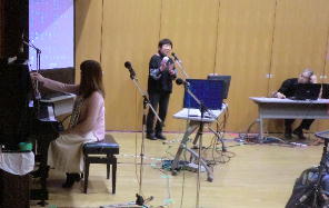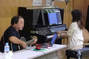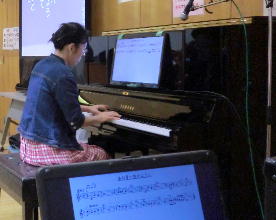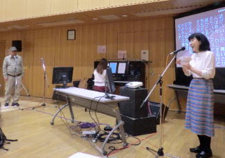 会場が視聴覚室でピアノがなく、伴奏のmeguちゃんは