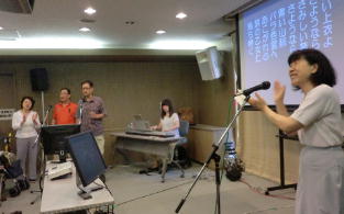 軽快なキーボードとギターにに乗って、たのしく歌っていきました。